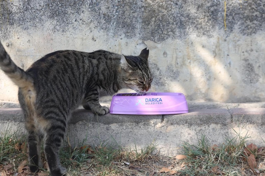 Darıca Belediyesi, sokak hayvanlarının temel ihtiyaçlarını karşılamak için ilçenin farklı bölgelerine mama ve su kapları yerleştirdi.