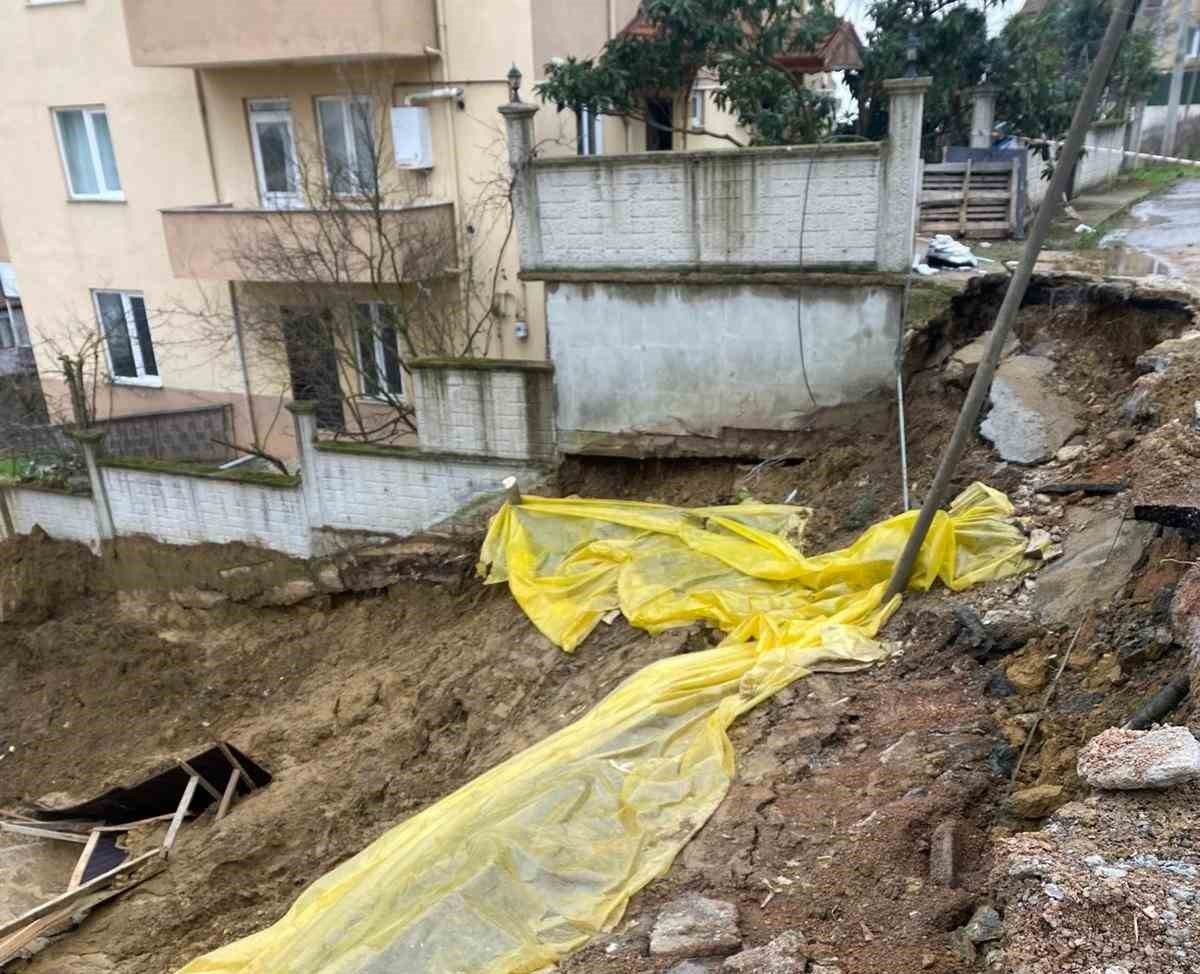 Olay, Tüysüzler Mahallesi Esra Sokak’ta bulunan inşaat şantiyesinde yaşandı. Yağışların zemini yumuşatması sonucu istinat noktasında çökme meydana geldi. Yolun inşaata bakan kısmı koparak aşağı doğru kayarken, şantiye içerisindeki ahşap kalıplar ve çeşitli malzemeler de çukura sürüklendi. Çökme sırasında bir apartmanın bahçe duvarı yıkıldı, otopark bölümünde hasar oluştu. Ayrıca yer altından geçen su ve diğer altyapı hatlarının da zarar gördüğü bildirildi.