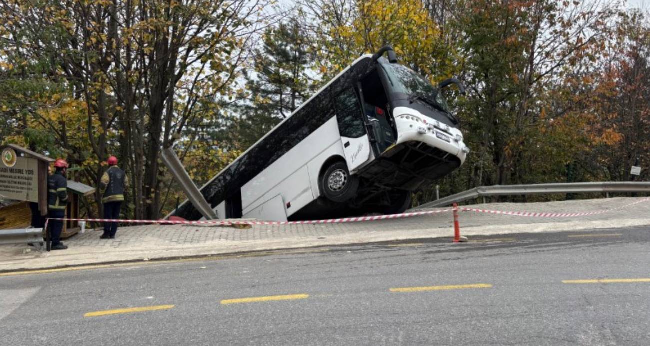 Kocaeli’nin Kartepe ilçesinde park halindeyken kendi kendine hareket eden bir tur otobüsü, bariyerleri aşarak şarampole sürüklendi. Neyse ki kazada yaralanan olmadı.