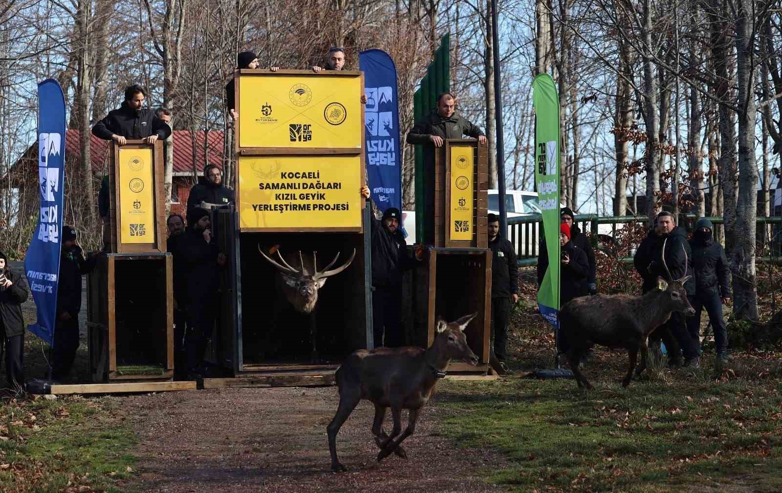 Kocaeli Büyükşehir Belediyesi ile Tarım ve Orman Bakanlığı Doğa Koruma ve Milli Parklar Genel Müdürlüğü’nün birlikte yürüttüğü “Samanlı Dağları Kızıl Geyik Yerleştirme Projesi” çerçevesinde gerçekleştirilen son salımla, yıl içinde doğaya bırakılan kızıl geyik sayısı 15’e yükseldi.