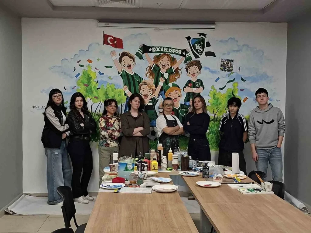 Kocaeli Güzel Sanatlar Lisesi öğretmen ve öğrencileri, Kocaelispor sevgisini çocuklara özel bir sanat çalışmasıyla duvarlara taşıdı. Kocaeli Stadyumu Seremoni Odası’nda hayata geçirilen proje, minik taraftarlar için renkli ve eğlenceli bir atmosfer oluşturdu.